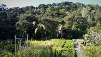 The day wrapped up at the Kaipatiki Project centre, on the margins of the ecologically significant Eskdale Bush Scenic Reserve on Auckland’s North Shore. The Kaipatiki area has a population of 90,000 and also includes 36km of coastline. The Project’s overall purpose is to help people live sustainably. Programme Manager Anna Halliwell showed us around the site and the nursery which provides eco-sourced plants for revegetation projects. They use permaculture principles, composting weeds on site where feasible, striving to maintain the mauri (lifeforce) and wairua (nature; essence) of the sites they carry out their restoration work in.