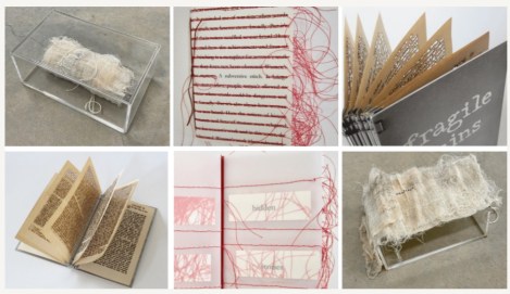 Using entirely different materials, Makayla Curtis described how she works with fabric pages (both to print on and to bind) and the impact fabric pages has on a reader/viewer. One aspect of using cotton, linen and silk for pages is transparency, which can simultaneously “…provide a glimpse of past and future“. As a printmaker, bookbinder and poet, she also works at the Museum of Transport and Technology as a voluntary letterpress compositor adding another dimension to book production and content.