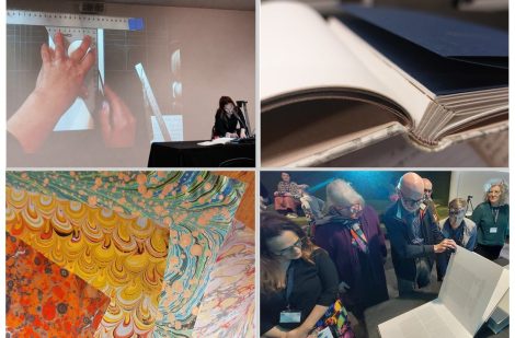 Bind25 was a feast: from sumptuous editions handstitched and presented to perfection (Louise James) to the intrigues of conserving and storing fragile papers (Chris Woods), to the business of the promoting and earning a sustainable living as a bespoke binder (Ben Elbel), books as unique sculptural objects (Monica Oppen), calligraphic lettering (Margaret Woollett), intriguing techniques for binding and creating lustrous surfaces (Sol Rebora, Coleen Curry), to building narrative content (Fiona Dempster). The unifying themes? The joy of making, and above all, valuing the handmade.