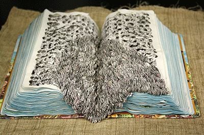 Format: While some are formatted as traditional books (my personal work sits firmly at this end of the spectrum), others expanding the idea of the book by becoming sculptural objects. New works may be created from existing books, for example, subverting the original content to create new meaning, using the book as a building block for sculpture or making a book where the idea of “reading” is challenged.